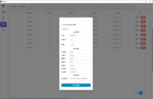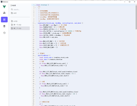 个人的毕业设计,一个采用 Electron + vue + elementUI + sqlLite 的一个用于给用户自己指定量化策略,并进行回测的系统,支持数据导入,策略编辑,回测, 结果展示功能.