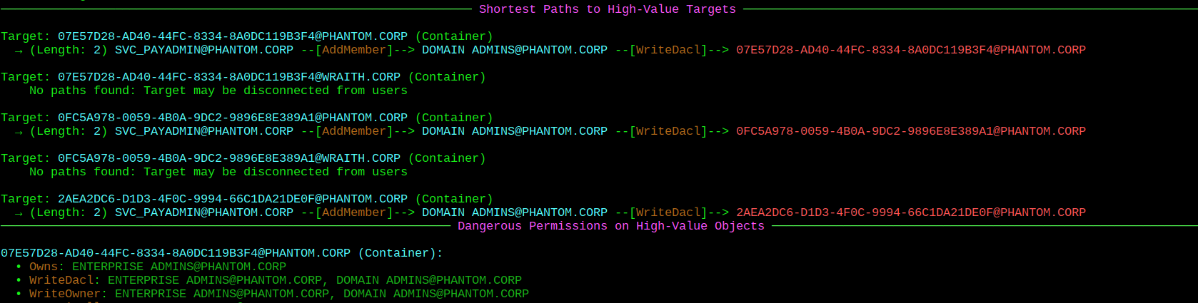 networkx.MultiDiGraphwith all relationships & ACEs from both platforms - Rich, colored terminal output (tables, panels, highlighted paths)