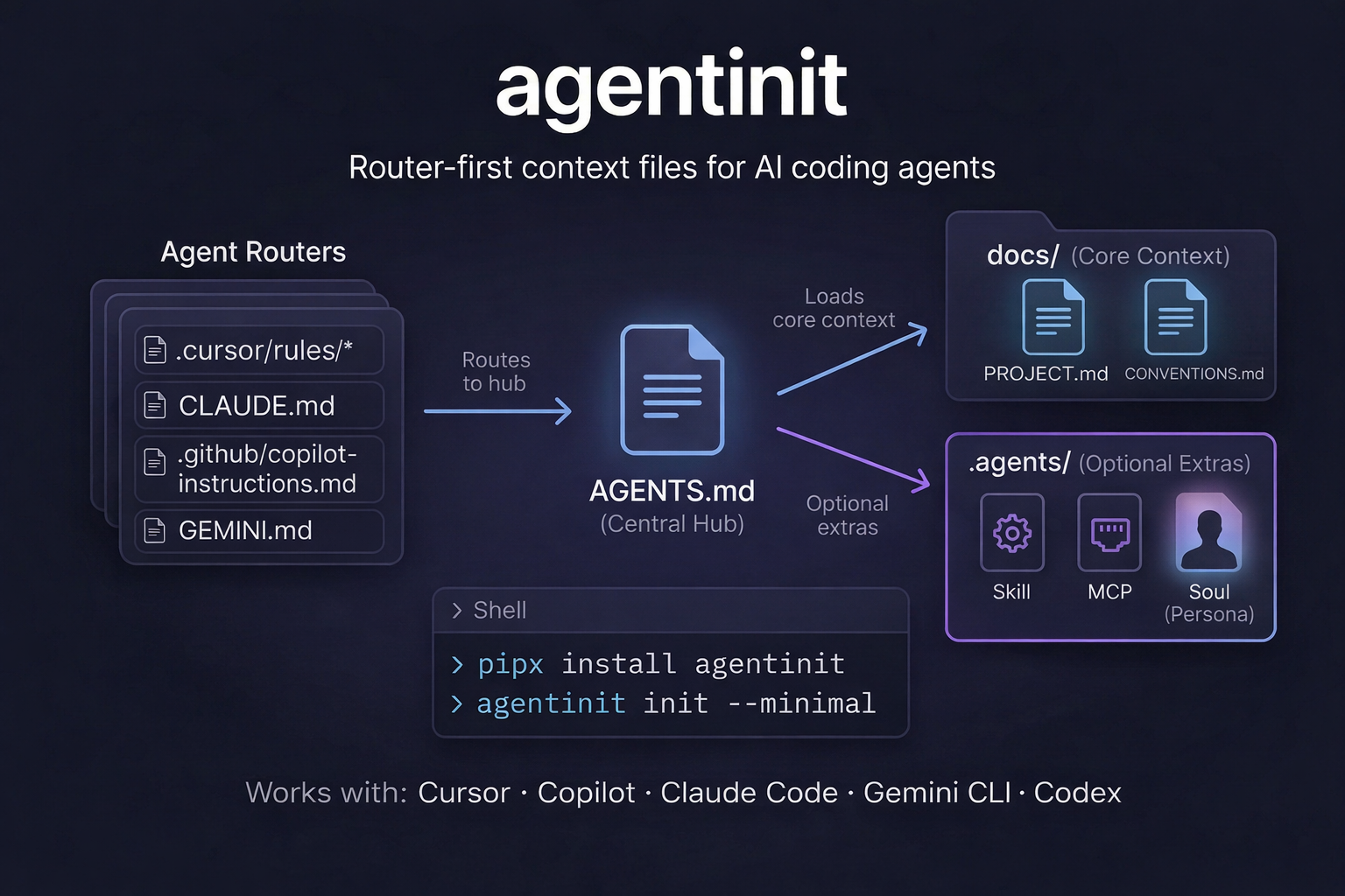 Token limits matter. agentinit includes a validator to prevent context bloat, broken links, and missing information.