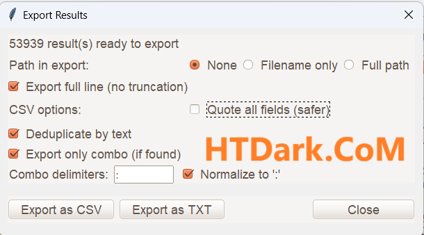 user:passcombos. - 📤 Exports results to CSV/TXT, with deduplication and normalization options.