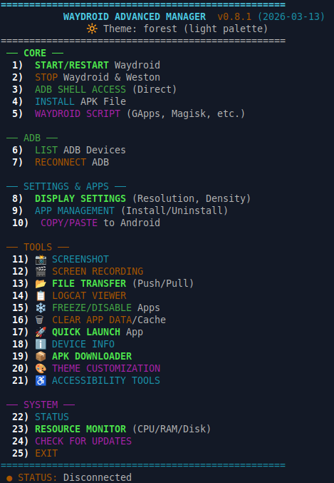 ./waydroid-manager.sh --versionto check the installed version and release date.