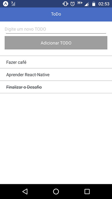 Simples TodoApp, sem api, feito com React Native no Expo: Baixe o Expo Cli no seu celular, e escaneie o QRCode desse link aqui
