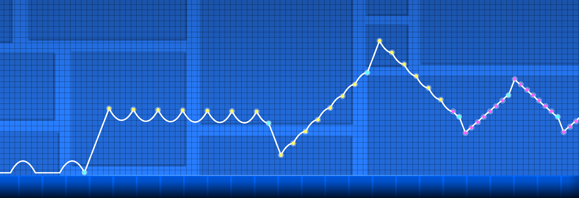 - Wave mode generates a diagonal path with rails and ramps sampled by arc length