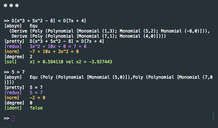 SharpSolver is a command line interpreter able to manipulate polynomial expression, in particular to recognize, simplify, normalize and derive polynomials. Moreover it is able to solve polynomial equations of degree less than or equal to 3.