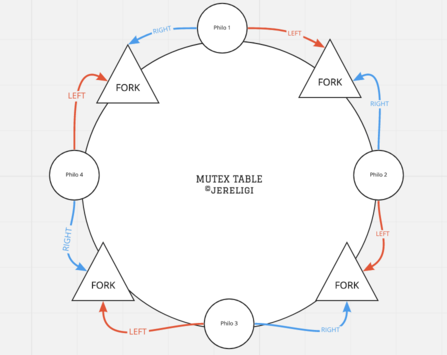 A C implementation of the classic Dining Philosophers problem. A 42 school project exploring threading, mutexes, and semaphores to solve synchronization issues.