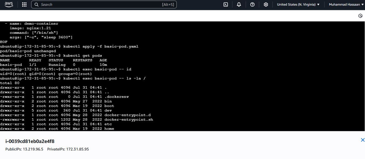 Explore securityContext in a basic Pod without extra hardening