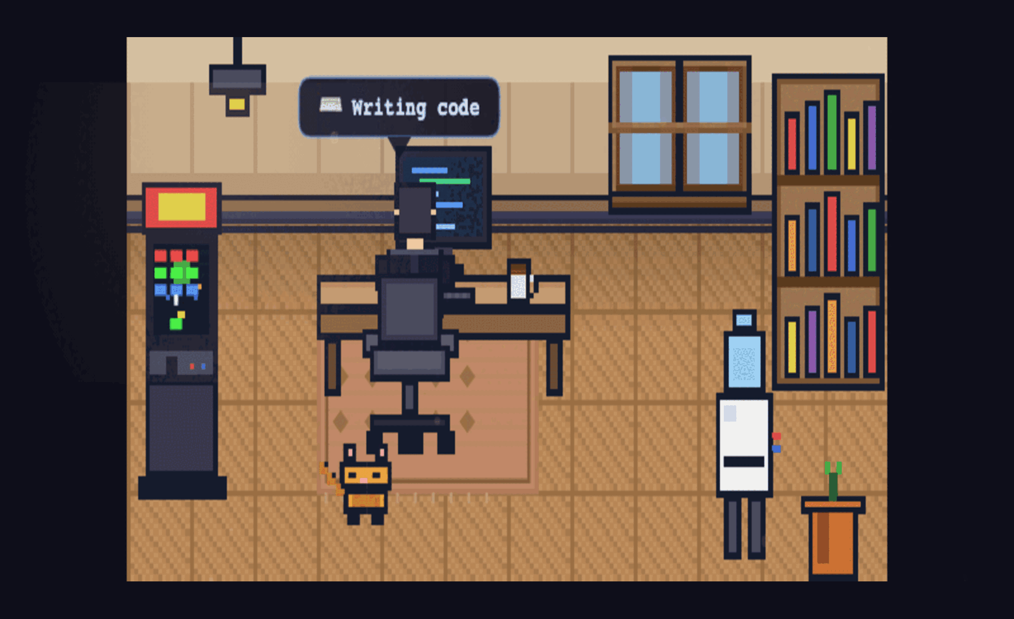 Cursor Office – A living pixel-art office for your Cursor AI agent. Watch it work, click things, discover easter eggs. |