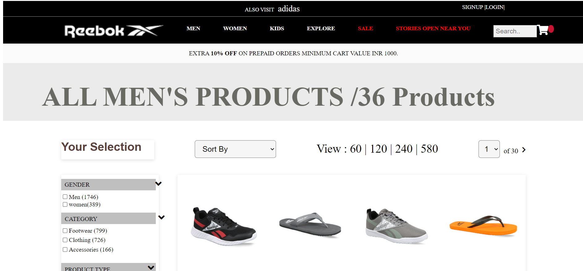 A clone of an e-commerce website where you can buy sports related things like sportswear,sportsshoes etc.